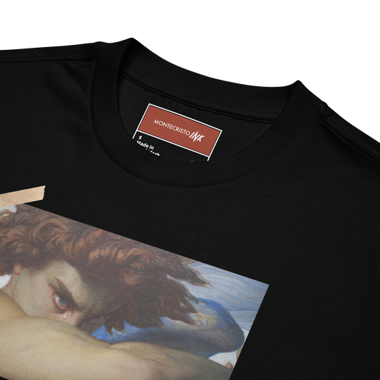 The L'Ange Déchu x Alexandre Cabanel collection redefines timeless art through contemporary design. Inspired by Cabanel’s iconic 1847 masterpiece L'Ange Déchu (The Fallen Angel), this collection captures the raw emotion of resilience and strength with unparalleled precision. Each piece features enhanced digital artwork that highlights the angel’s profound vulnerability and power, paired with empowering phrases like “Every scar tells a story, every tear has a purpose.” Blending Montecristo Ink’s signature craftsmanship with high-end techniques, this collection celebrates authenticity, courage, and the unapologetic journey of self-discovery. It’s more than fashion—it’s your story, reimagined in wearable art.